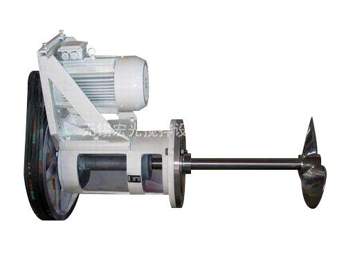 驅(qū)動(dòng)裝置采用普通電機(jī)或防爆電機(jī)直接通過(guò)皮帶輪驅(qū)動(dòng)裝置與攪拌軸聯(lián)接。攪拌軸由雙向推力軸承和水潤(rùn)滑滑動(dòng)軸承支承,具有足夠的強(qiáng)度和剛度,并具有高的穩(wěn)定性。