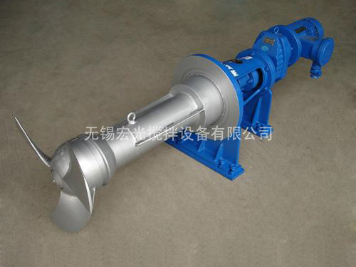 側(cè)入式攪拌機(jī)是將攪拌裝置安裝在設(shè)備筒體的側(cè)壁上,攪拌機(jī)上的攪拌器通常采用軸流型,以推進(jìn)式攪拌器為多,在消耗同等功率情況下,能得到高的攪拌效果,功率消耗僅為頂攪拌的1/3~2/3,成本僅為頂攪拌的1/4~1/3。轉(zhuǎn)速可在200~750r/min。