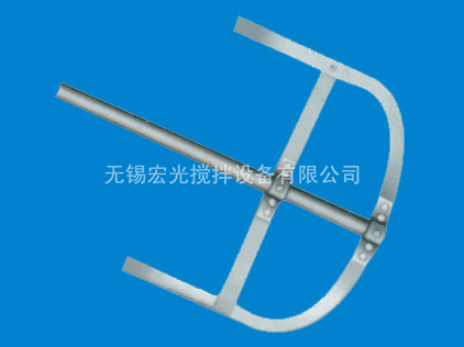 槳葉外緣形狀與攪拌槽內(nèi)壁要一致,其間僅有小間隙,可清理附在槽壁上的粘性反應產(chǎn)物或堆積于槽底的固體物,保持好的傳熱效果。槳葉外緣的圓周速度為 0.5~1.5m/s,可用于攪拌粘度高達200Pa·s的牛頓型流體。