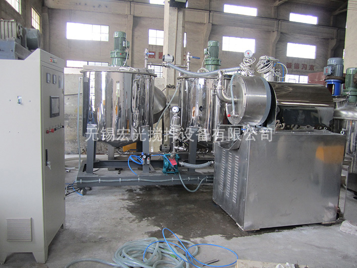 加料泵將預(yù)分散的材料送人研磨桶,研磨筒內(nèi)裝有研磨介質(zhì),磨細(xì)后的物料經(jīng)動(dòng)態(tài)分離器排出,視產(chǎn)品細(xì)度不同,可采用單臺(tái)連續(xù)或多臺(tái)串聯(lián)連續(xù)研磨工藝。